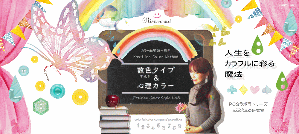 ①心の色(心理カラー)と②生年月日の色(数色®19タイプ)この「2つの色彩からの恩恵」を融合させたのがKao-Lino Color Method数色®19タイプ&心理カラーです。